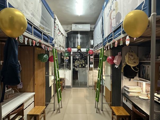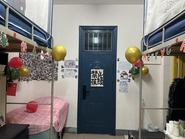 本届宿舍文化节系列活动巧妙地融合了线上与线下两种形式,精心策划了“筑梦空间”宿舍改造大赛和“光影创意”宿舍摄影比赛两大板块活动,吸引同学们热情参与。在“筑梦空间”宿舍改造活动中,同学们积极响应“筑梦空间,创意无限”的主题,充分发挥自己的创意和才华,将宿舍打造成为既温馨又充满个性的小天地。11月25日,36365官网辅导员钟纯、邹世斌、谭步康、罗安妮老师下寝对此次的宿舍美化改造进行评审打分,分别从主题表达、宿舍卫生、装饰创意等多个维度考核,深切感受到了学生们独具匠心的宿舍设计和和谐融洽的宿舍氛围。有些宿舍以春节作为主题,门上贴着喜庆的对联,窗户上挂着红色的窗花,营造出一种浓厚的节日氛围;还有一些宿舍选择主打温馨风格,这些宿舍的装饰风格简约而不失雅致,色调柔和,给人一种宁静和放松的感觉。