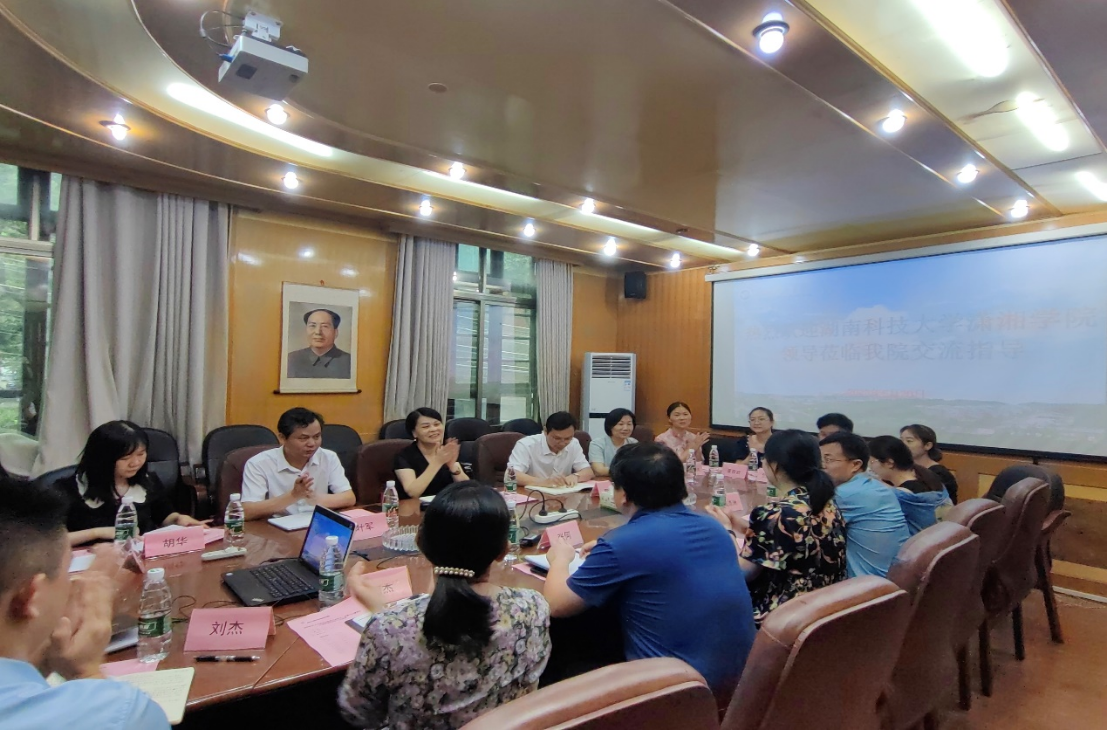 6月20日,36365官网院长禹旭才、党委书记廖双红带队到湖南工程学院应用技术学院进行工作交流。副院长余蓉晖、副书记叶军及学院各科室负责人、学部部长参加。