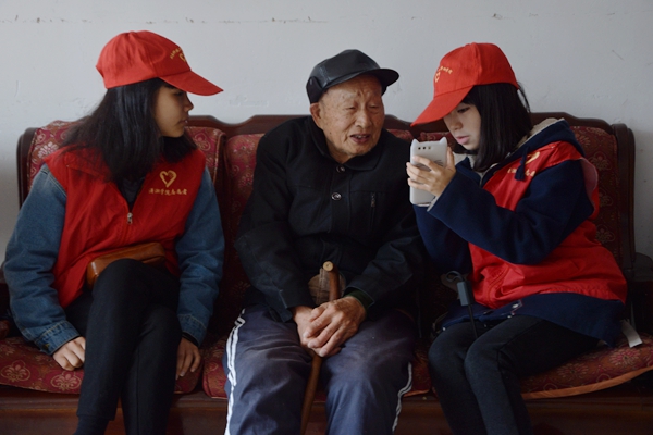 一身红装的志愿者们成为了今天敬老院一道亮丽的风景线。一时间寂静的敬老院开始热闹起来,长时间孤独的老人们在看到赶来看望他们的志愿者时,高兴的合不拢嘴,拉着志愿者的手嘘寒问暖,唠唠家常,院里也不时传出阵阵和蔼的笑声。志愿者们听老人讲自己的过去,也与老人分享自己的校园生活,还为老人们表演了小节目,让这些在孤独中生活着的老人露出了开心的笑容。