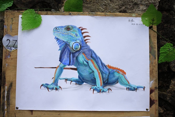 新奇有趣的皮影戏、传统人物画作,惟妙惟肖的圆珠笔、铅笔人像,写意的山水墨画、书法,活灵活现的彩铅动物等等,令人叹为观止。