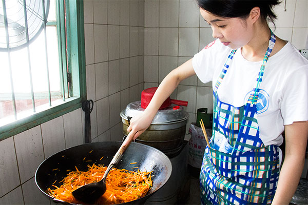 78日清晨600,当其他志愿者还沉浸在梦乡的时候,“三下乡”后勤组的五位成员早已洗漱完毕,并到达食堂开启了一天的幕后服务生活。